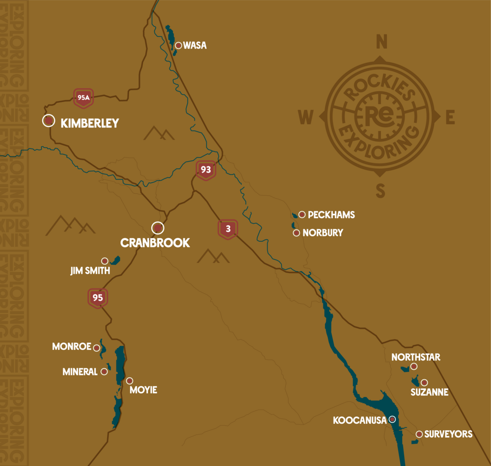 This day trip, starting from Cranbrook, brings you to four different lakes, two of which are within provincial parks, and covers a distance just short of 70 kilometres; about an hour of driving time.